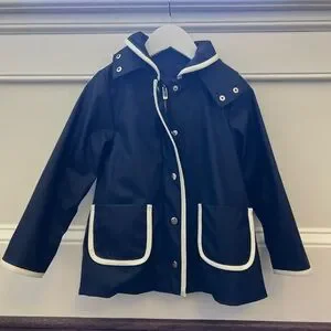 Jacadi Navy Blue Hooded Raincoat with White Trim