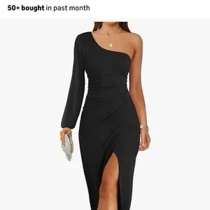 Turn heads with this sophisticated one-shoulder black dress. Its sleek design is perfect for any event, offering a flattering fit and sexy high slit ruched bodycon maxi dress