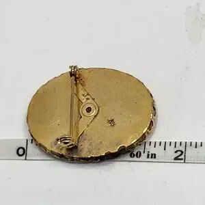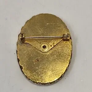 German Shepherd Dog Oval Porcelain Cameo Style Brooch Pin Gold Tone Scalloped