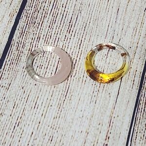 Add a touch of elegance with these stunning pink and yellow crystal rings. Perfect for any occasion.