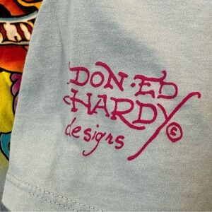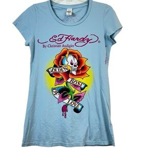 • Keywords: Ed Hardy shirt, Christian Audigier tee, Golden Rose of Love shirt, Y2K graphic tee, tattoo style tee, babydoll fit shirt.