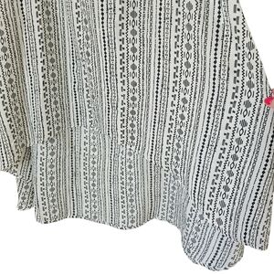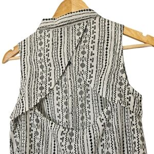 Black White Geometric Print Boho Flowy Sleeveless High Low Midi Dress, Size L