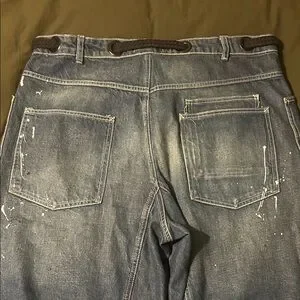 Stylish wide leg jeans. Dark blue denim. Casual and trendy look.