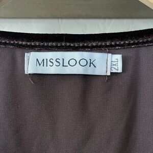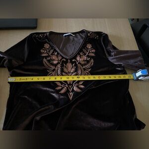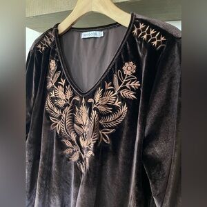 Misslook|Brown Velvet Tunic Top with Floral Embroidered Accent, Size 2x•••Boho