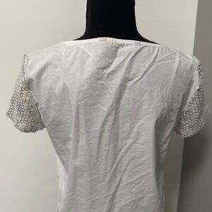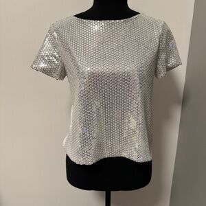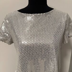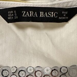 *ZARA* White x Silver Short Sleeve Sequin Top Size Small