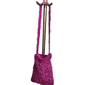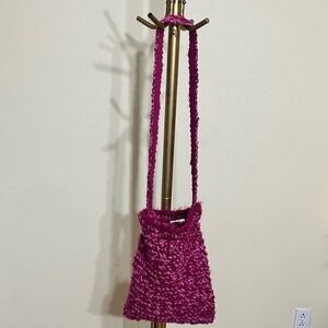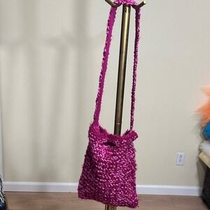 Vintage GAP pink wool Crochet Crossbody hand Bag KNIT BOHO Hippi Retro Purse