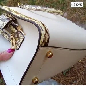 Coach Stunning Cream colored Zoe Python and leather like new shoulder bag With Lock And Key