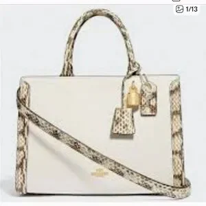Coach Zoe Carryall Leather with Exotic Snake Skin Details W/ Lock and Key