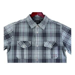 Fourstar Flannel Shirt Mens Medium Gray Purple Plaid Street Pirate Skate