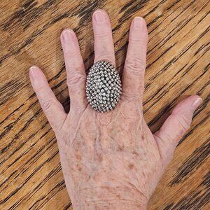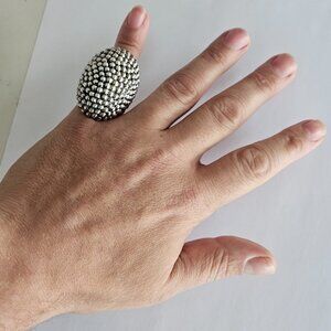 Vintage Massive Guillermo Taxco .999 Fine Silver Caviar Beaded Statement Ring