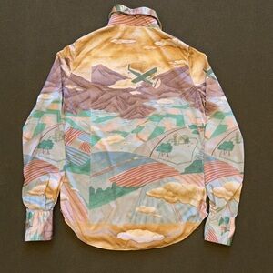 Vintage 70s Mountain Prairie Landscape Long Sleeve Button Up Shirt