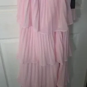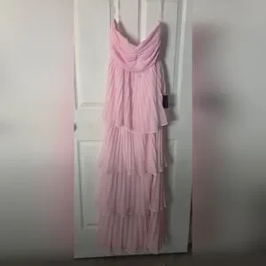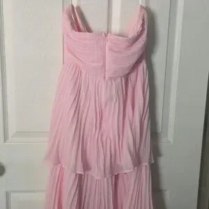 Chic strapless design. Soft pink hue. Perfect for elegant events.