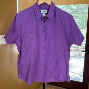 Vintage REI 100% Cotton Purple Button Down Short Sleeve Outdoor Top Size Large