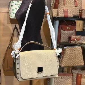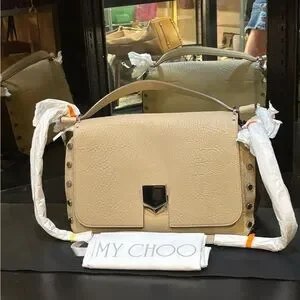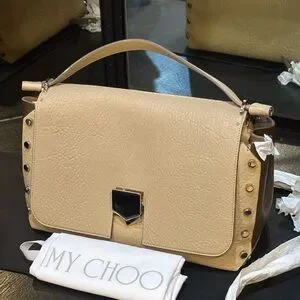 Jimmy Choo large Lockett handbag approx 16”x10”x6” in tan/green leather. Bag looks brand new, never carried just sat in closet. Plastic still covers the hardware.