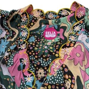 CeliaB Hortensia Mini Short Puff Sleeve Floral Belted Dress Sz XS