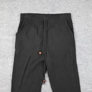 Laura Gayle Pants Womens Petite Small Black Crinkle Pleated Drawstring Waist