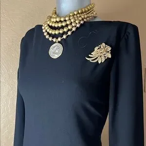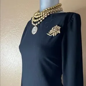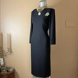 Sophisticated black dress with long sleeves. Perfect for formal events. Timeless and chic design.