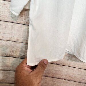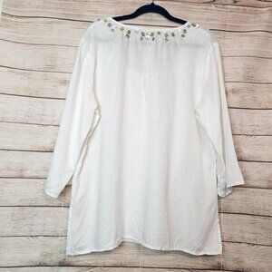 J. Jill Women's Large White Linen Sequin Iridescent Beaded Tunic Top Boho Crispy