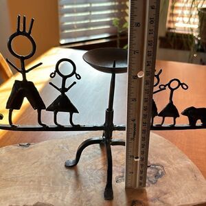 Handmade Iron Metal Candle Holder. Measures approximately 12" wide; 8”tall.