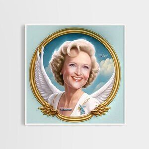 Betty White Smiling Golden Girls Iconic Woman In Heaven Angel Wings Portrait Oil Painting Fantasy Art Print