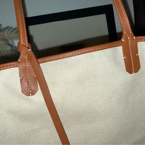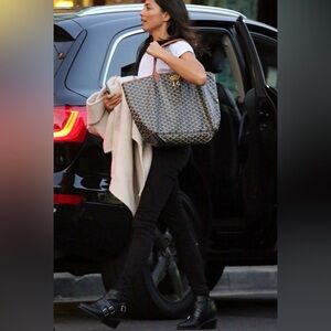 Elegant Goyard tote in black and brown. Includes a coordinating pouch.