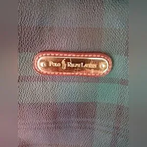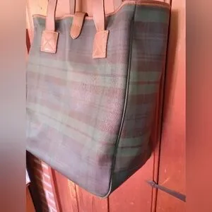 Vintage Green Plaid Tote Bag with Brown Leather Handles Polo Ralph Lauren