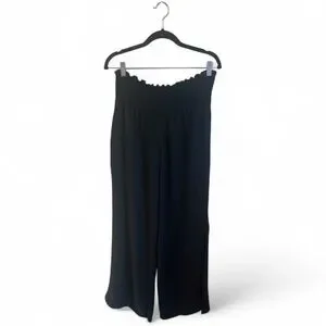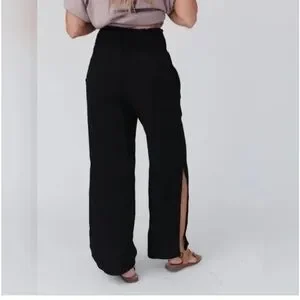 Three Bird Nest Dani Slit Wide Leg Pant Size Large Black Elastic Waistband Flowy