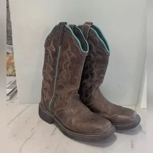 Justin Boots Gypsy Raya Brown and Teal Cowboy Boots Women's Size 7