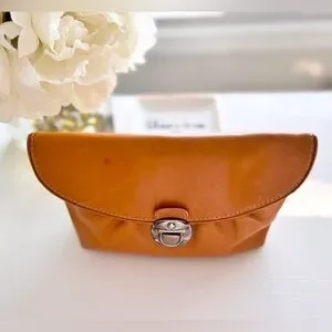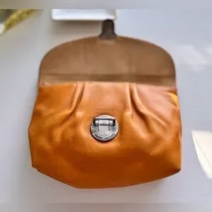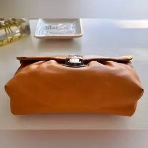 Marc Jacobs Caramel Leather Clutch bag with Silver Metal Hardware