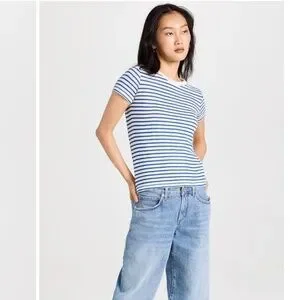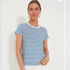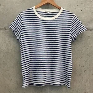 Alex Mill Blue and White Prospect Tee in Stripe, Linen Blend, Size Large