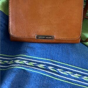 Elegant tan leather shoulder bag by Antonio Melani. Ideal for versatile styling.