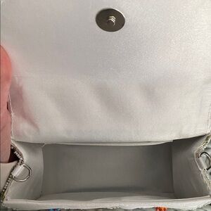 Charming mini bag with intricate beadwork. Features vibrant floral design. Perfect for adding a pop of color.