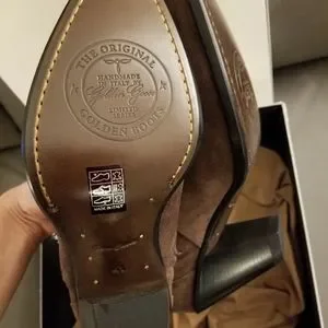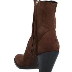 Features: brown, handmade, limited edition, soft suede leather, cowboy cowgirl western boots, pointed toe, leather upper, leather lining, leather sole, side zipper closure, fringe, logo star, golden goose star, stitches, cuban heel, heel height 3.12"