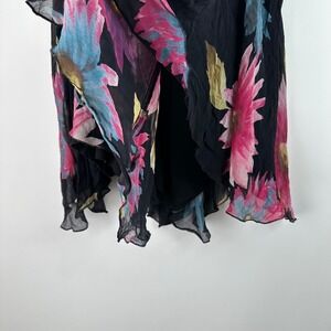 Karen Kane Floral Black Midi Skirt Women's Size 6 Asymmetrical Hem