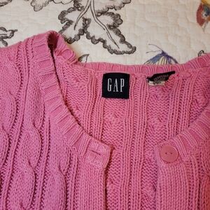 GAP Vintage Pink Cable Knit Button Up Cardigan Sweater 3/4 Sleeves Sz Small