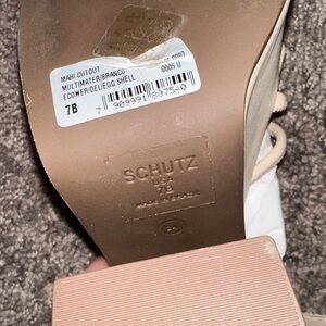 Elegant beige platforms with crisscross straps. Ideal for a bold look.