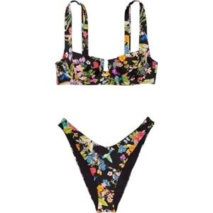 Black bird butterfly floral wicked underwire bikini top and matching bottom. New without tags!