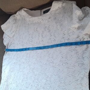 Chic white lace blouse with elegant design. Ideal for versatile styling. blouse is see thru and zipper back.