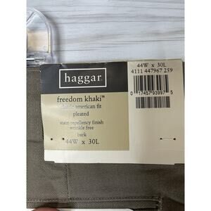 Haggar Pants Mens 44x30 Bark Freedom Khaki Pleated Classic Fit Wrinkle Free