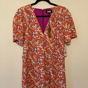 Details: New with Tags maxi dress floral AOP Summer front vent v neckline short sleeve fully lined Corpcore multicolor professional workwear