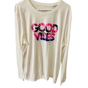 Life is Good Good Vibes Beach White NWT Long Sleeve Tee XXL Womens Casual Top
