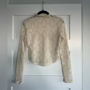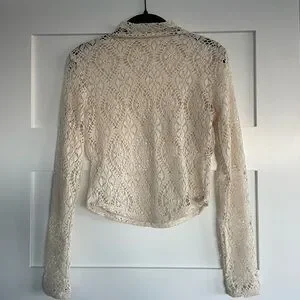 Free People Cream Crochet Lace Mock Neck Top