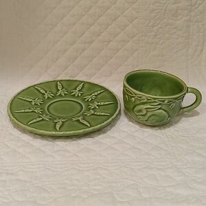 Bordallo Pinheiro green mini bunny rabbit teacup with saucer made in Portugal. Excellent condition