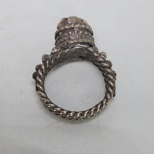 Antique Vintage Yemen 900 Silver Red Carnelian Tribal Ring Sz 11 Brutalist Chunk