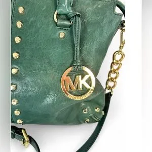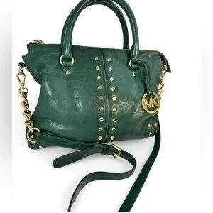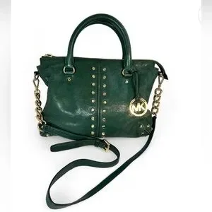 Michael Kors Uptown Astor studded leather satchel bag in hunter green Circa 2004