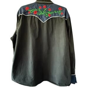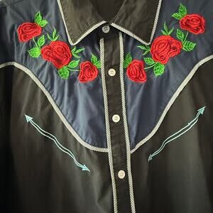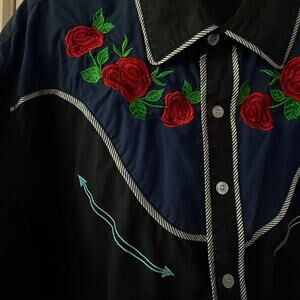 Coofandy Western Cowboy Shirt Black Blue Rose Embroidered Long Sleeve XX Large