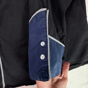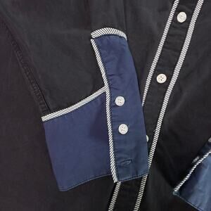 Color: Black with navy blue yoke and cuffs
