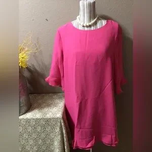 Elegant pink midi dress by CeCe. Features a flowing silhouette and three-quarter sleeves. Perfect for any occasion.