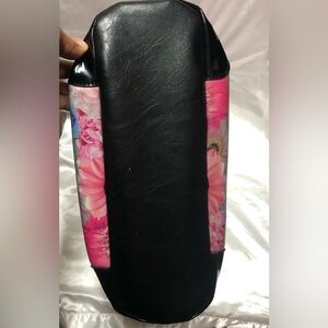 Nicole Lee N’5 Eye-catching handbag with a vibrant graphic design and stud details. Ideal for adding flair to any look. floral of a woman, rhinestone embellishment bag, known as a bowling bag, etc.Faux Leather (synthetic leather) preowned Good no Crossbody strap.13” Wide 15”Length