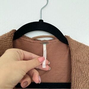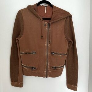 Free People Distressed Knit Full Zip Hoodie Moto Style Brown Size Small Women’s